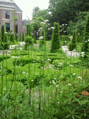 Today a lovely scene, if you like tended gardens, of the old partitioned garden at the back of Frankendael Huis. I really appreciate how the gardeners allow the plants to spill out here and there and especially so with the stunning Valerian officinalis which is shown here. Valerian medicine is traditionally focused on the roots but the flowers are also useful and have more subtle effects than the other parts of the plant. I have a big Valerian plant on my roof and this weekend, harvested every third flower cluster, for drying. Doing so leaves the beautiful appearance and special scent almost intact, for everyone else to enjoy.