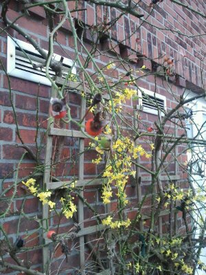 Rosehips and winter Jasmine (I’ve no idea of the Jasmine of this sort is useful).