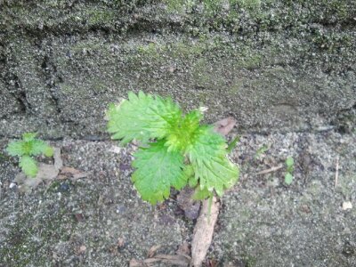 Tiny Stinging nettle plants popping up in pavement cracks. There are perennial and annual nettles in Amsterdam. Both are useful but I find the perennials stronger and more potent. Both are rich sources of nutrients which can boost iron levels, energy levels and calcium levels – and a host of other useful things!
