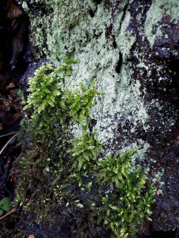 Mosses, liverworts and lichens are catching my attention these days, far more than anything else. Some are edible (in theory) and many have a multitude of uses. For me, they represent calm; deep, earthy, cool, calm I’m enjoying looking at them a lot. Sometimes through a magnifying lens, or through a camera but mostly just by getting up close, tuning into these ancient simple plants, looking closely at how they do things and smelling the air around them. And don’t they just smell great!