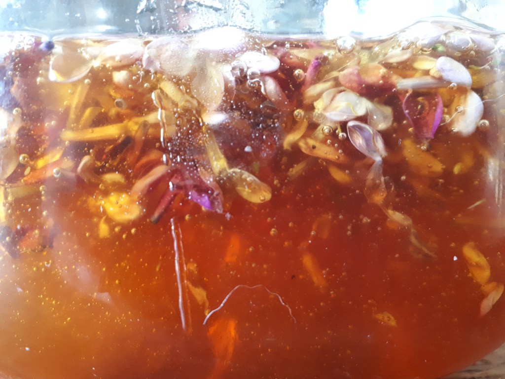 The flowers will rise to the top of the honey as air bubbles escape. That’s fine. Just ensure that those flowers are swimming in honey and that you check that all of the air bubbles have escaped.