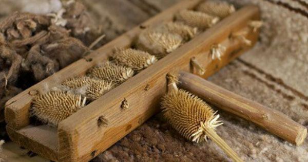Dried teasleheads in a carder. Photocredit: Pinterest