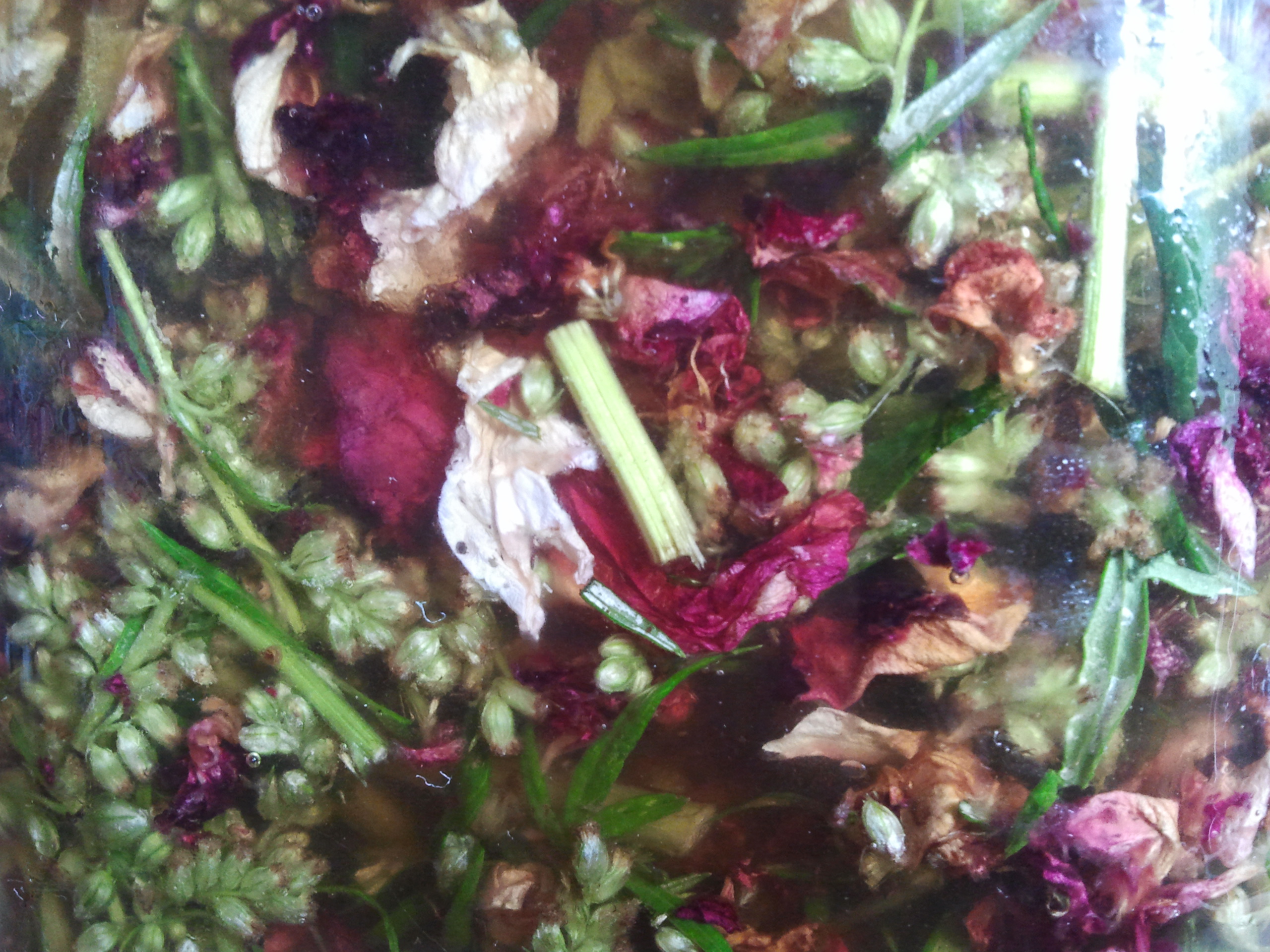 Let food be thy medicine. After the operation I incorporated Oatstraw infusion into my daily diet. One liter a day. This helped to soothe my nerves (they were rather frazzled). Motherwort tincture helped in this way also. Ten drops as and when needed to bring things into perspective again. I keep a green ointment in stock here at home for all manner of skin ailments. This was very helpful after the operation. I kept it away from the broken skin and used it with intention to seep into the skin and speed the bone and flesh healing. Comfrey within the ointment came into its own as I have never felt before. So soothing, healing, scar reducing and welcome. I trusted my thoughts on when to begin using it – not before the bone setting operation, not before the skin had stopped it’s healing fluid oozing. All had calmed before I used it. I did not wash my face for three weeks and then moved onto a regime of plain tepid water, then a little ointment here and there above the breaks plus the SJW oil mentioned below. My face was cut and grazed from my eyebrow to my collarbone. All marks went quickly, except for the super glued cut (which is not surprising). What money we waste on skin care preparations!