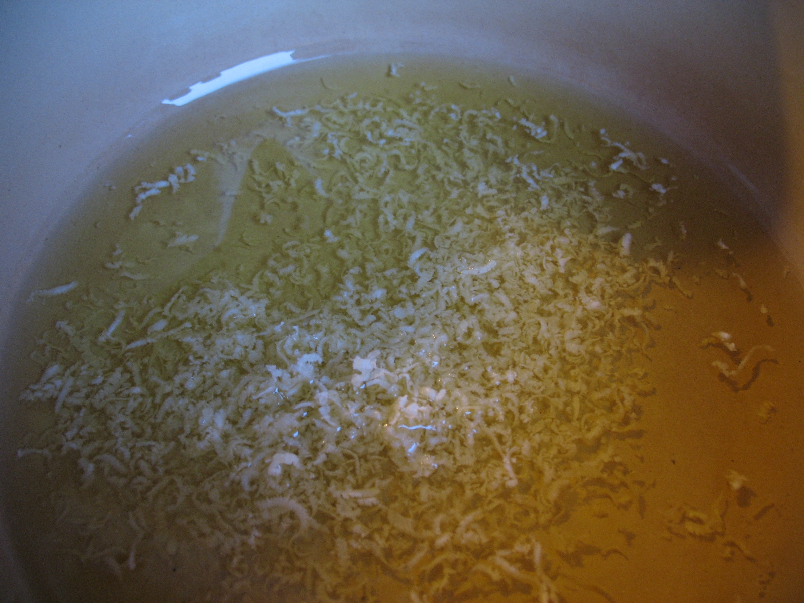 Warm very gently as you dissolve the grated beeswax, I stir with a clean finger to check that the temperature remains really low.