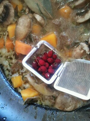 I prefer to lay them in my handy small Japanese vegetable press. I then sprinkle with a pinch of salt and apply the gentle but consistent pressure of the Japanese press for about 3 hours. This produces a very light ferment and it draws out some of the water from the petals (which tastes good too). You can leave the pressure for a lot longer if you prefer, winding the contraption every few hours to ensure the petals are in fact under a little pressure and to encourage the process.