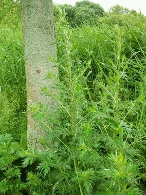 Mugwort (Artemisia vulgaris). Not the most productive year for bushy Mugwort plants in Amsterdam. They are far more slender than usual but still taste great and are very potent at the moment.