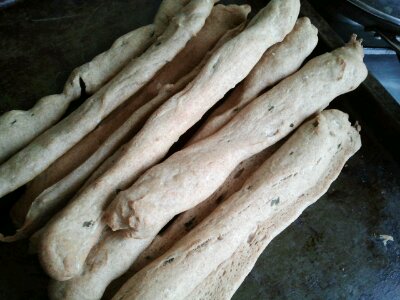 Creating the herby bread sticks: