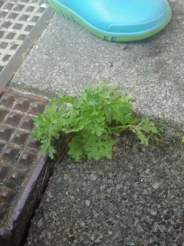 When the council next comes to strim weeds in my street, these lovely Wormwood babies would be lost, so this afternoon I whipped lots of them out of the ground, to save them in plant pots.