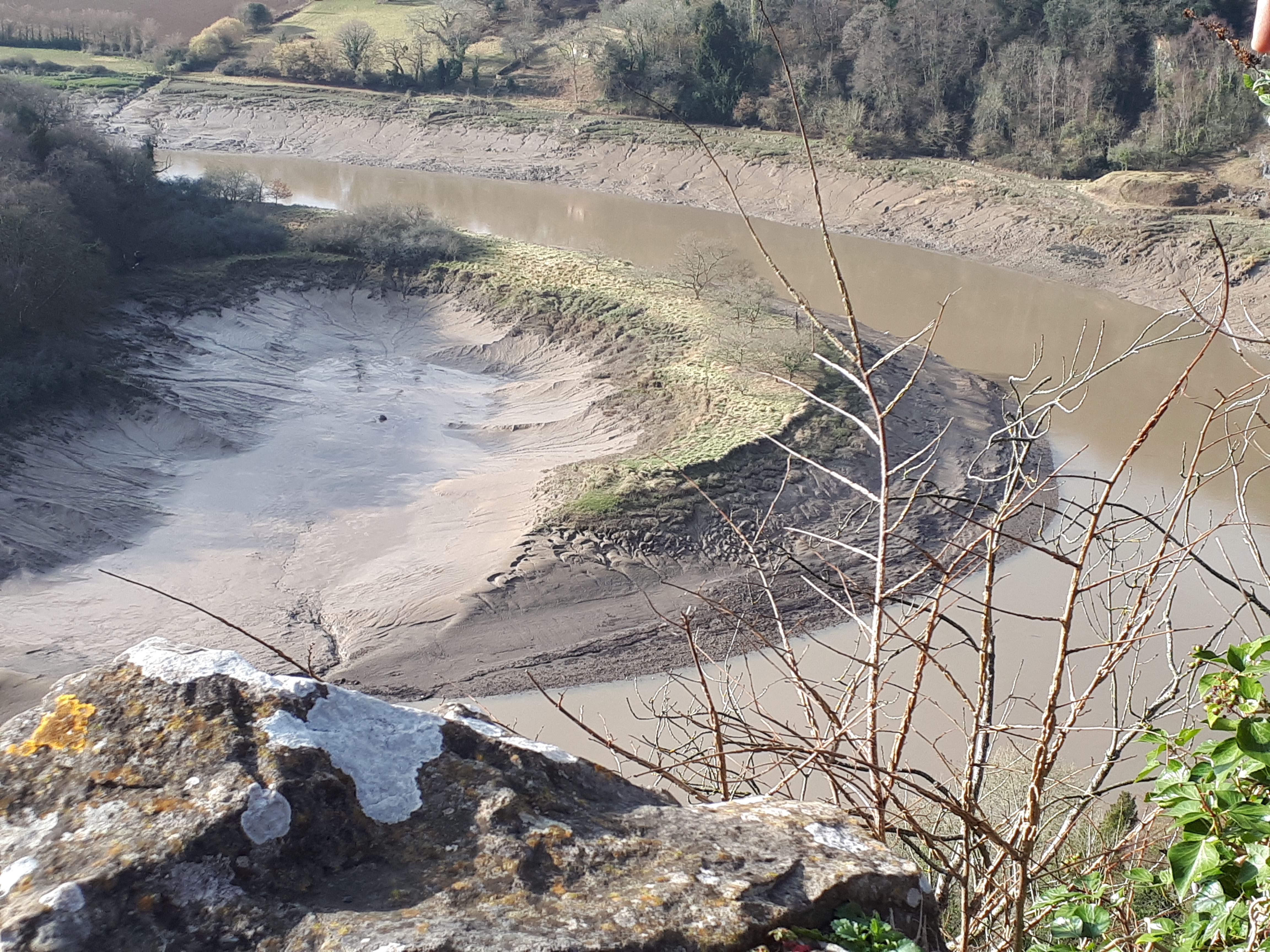 We spent some time sitting a top a mound, watching the River Wye flow strongly by, spotting plants, observing birds feeding in the mud on the opposite river bank and wondering if two distant rock climbers would really make it to the top of a cliff face.