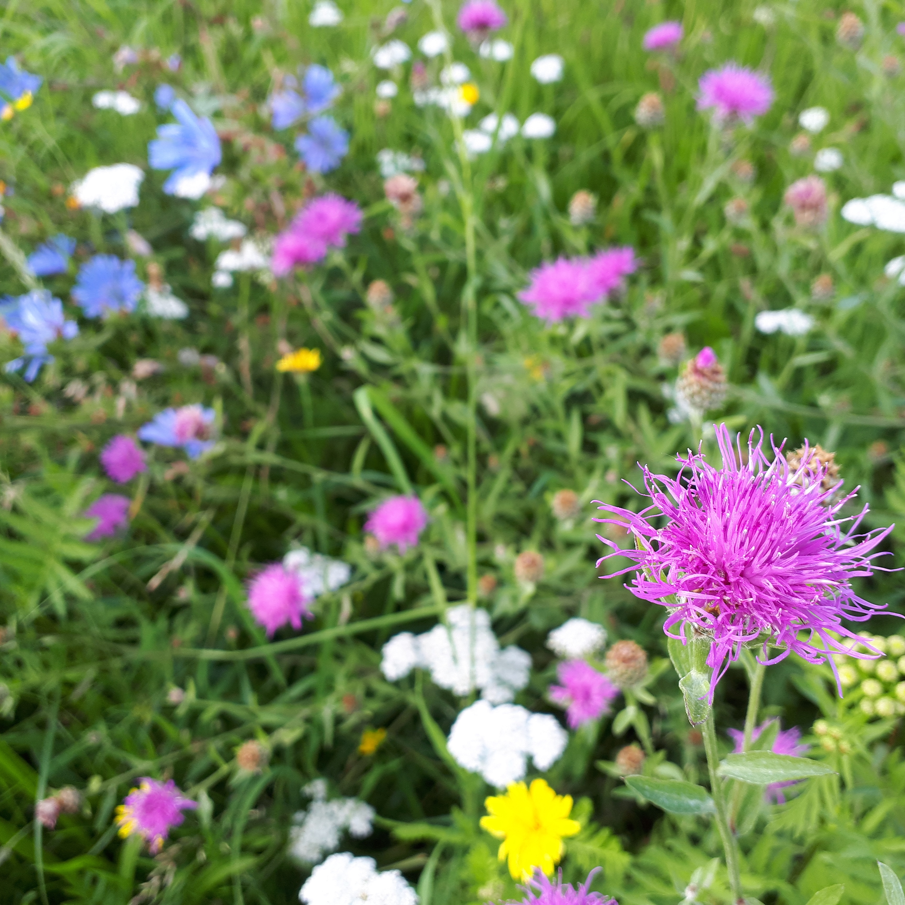 Patch of Malva sylvestris, growing with Yarrow