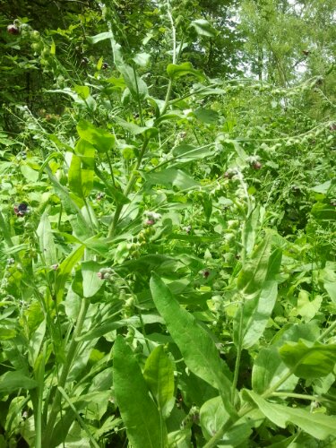 Here’s another poisonous plant, White Bryony (Bryonia dioica) entwined around Motherwort (Leonurus cardiaca). I was looking at Motherwort today because it’s flowers are just beginning to become obvious and soon the leaves of the plant will become more familiar to those who know its flower heads. Can you see the flowers developing in whirls close to the leaf bases and the square Labiate stems? This is a good time to harvest and tincture the plant but you should watch it for a full cycle to ensure its the real thing.