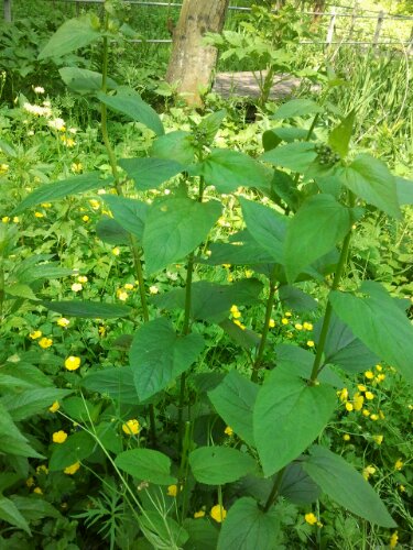 There are many Scullcaps and all have the same active constituents. Most likely, this one is Sculletaria altissima, Tall Skullcap, Glidkruid in Dutch. It is labelled as Tros Glidkruid (Sculletaria columnae) in the herb garden of the park but I am not convinced. The flowers are very similar but the underlip of this Frankendael plant is definitely white, throughout, it doesn’t blend from white to mauve at all, there is clear definition.