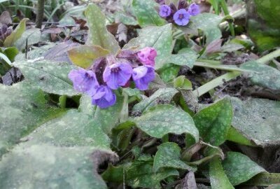 Above, Lungwort (Pulmonaria officinalis) again. This time with a mixture of pink and purple flowers. It really stands out at this time of year.