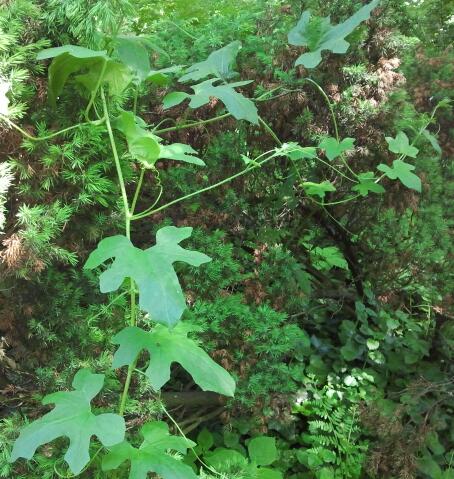 Poisonous White Bryony, looking as though it fancies strangling the Juniper bush.
