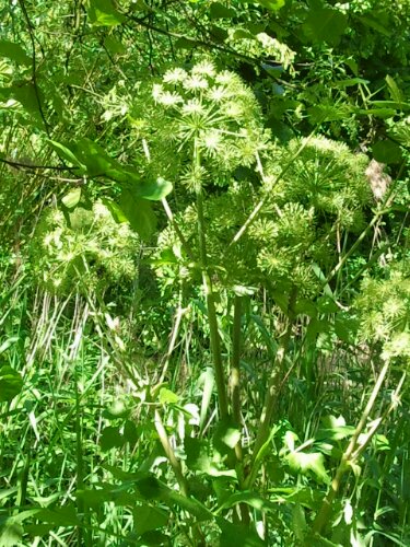 Angelica archangelica, with it’s out-of-this-world flower heads, towing over the other pond plants.