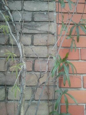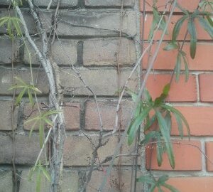 Here’s a photo of a tiny section of a well stocked pavement garden. It it’s brimming with plants, many of which are herbs. The three shown here are Passionflower (Passiflora) to the left, Sage (Salvia officinalis) in the centre and Rosemary (Rosemary officinalis) to the right.