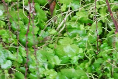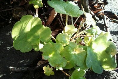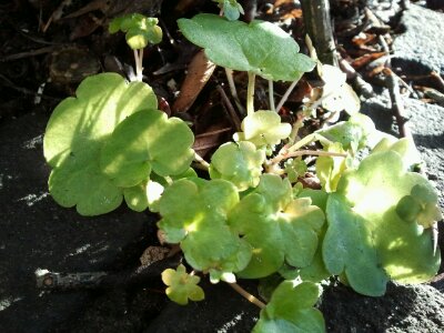 I believe that this is Slender Speedwell (Veronica filiformis). Its a pretty little plant with forget-me-not style flowers, which is edible and medicinal. The ladybirds were having a field day on it, munching through aphids, not yet killed off by cold weather. Here’s a useful and inspiring blog post about Speedwells, which may be of interest.