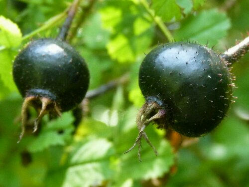 Firstly, black rosehips of Burnet Rose (Rosa pimpinellifolia).  These are really quite an amazing colour, compared to most other hips. I showed the flowers of this shrub a few months ago and now the hips are maturing and standing out gloriously. All rose hips, of whichever colour, from whichever species, can be transformed into delicious and nutritious vitamin c rich conserves. I look forward to giving these a gentle squeeze, when I return from holiday, to see how ripe they are. Rose hips need to be fairly soft but not at all rotting, to be harvested. Whatever preparations are made from hips, the pips (seeds) must be carefully removed by sieving, before the final storage as they are covered in tiny irritating hairs.