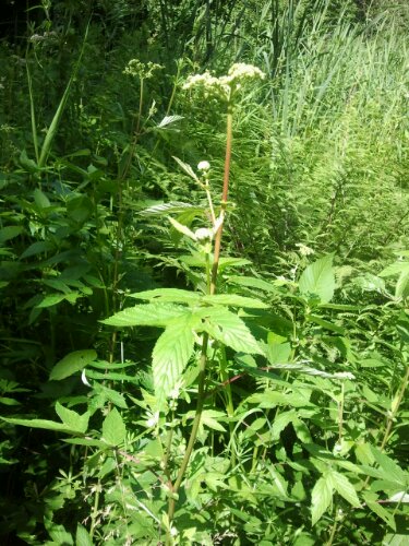Meadowsweet, Filipendula ulmaria is another herb I gratefully harvested today. It makes a good stomach medicine, as a tea or tincture. It can help with stomach ulcers, general stomach upsets such as gas and can help calm excess stomach acid. It contains salicyclic acid, the derivative of Asprin and should be used with caution by those taking Asprin as it will increase the dose present in the body. It is interesting to note that unlike Asprin, which can cause gastric bleeding, Meadowsweet has a soothing effect on that area of the body. Another example of how taking a chemical out of its natural plant environment changes it’s affect on the body. Meadowsweet is traditionally harvested now, just before the flowers open. Finally I found some that had just bloomed in the Frankendael ponds. I harvested some pre-flowering tops, have tinctured a couple and am drying the rest. By harvesting very gently and not to low down the stem I get stronger tinctures/ tea and also allow the plants to have another go at flowering this season.